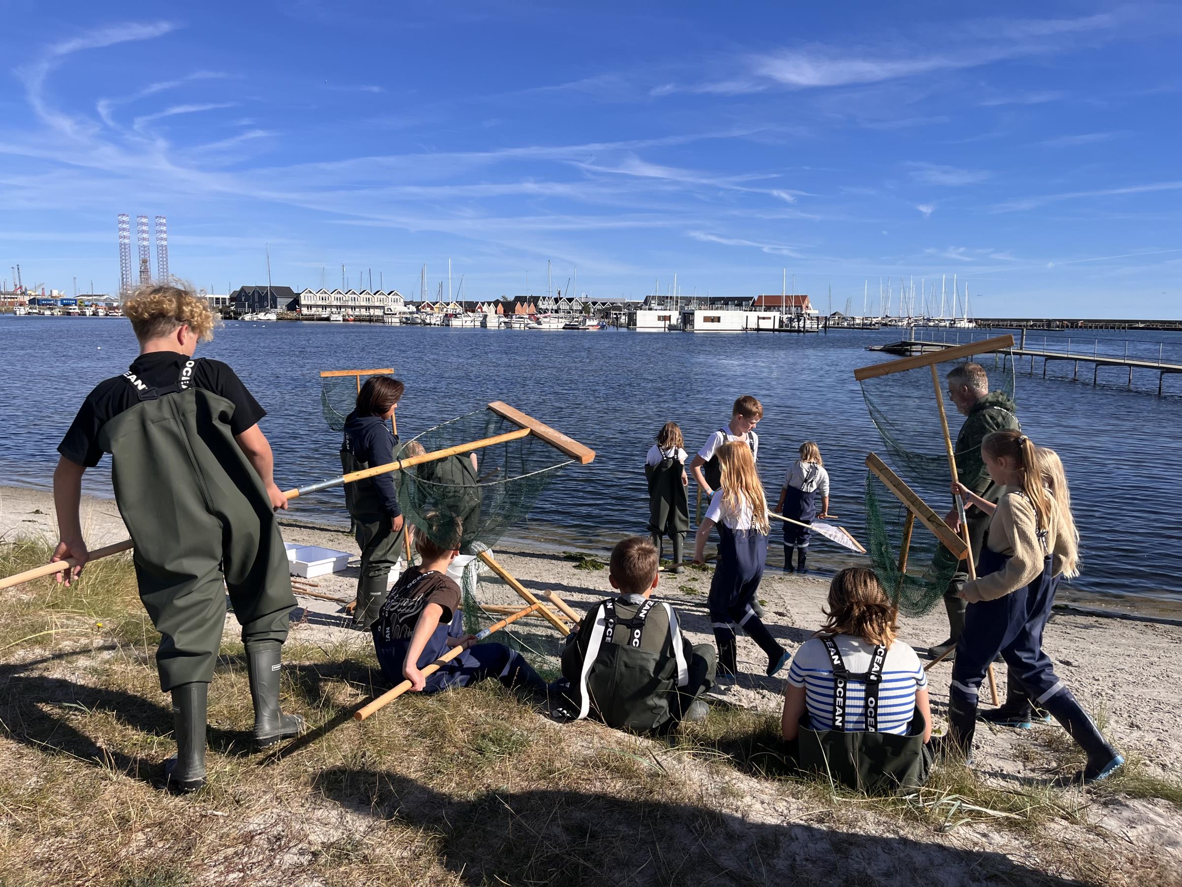 Om onsdagen skulle vi gå meget, vi skulle gå hen til Naturskolen. Vi blev delt op i to hold. Det ene hold skulle lege nogle lege og de andre skulle gå i waders. Jeg startede med at gå i waders, og det var meget sjovt, fordi man kunne se, hvad der er i vandet. Marie og jeg var sammen om at finde dyr i vandet. Jeg fangede faktisk en fisk, men ikke en stor en bare en lille, men det var jeg også glad for.